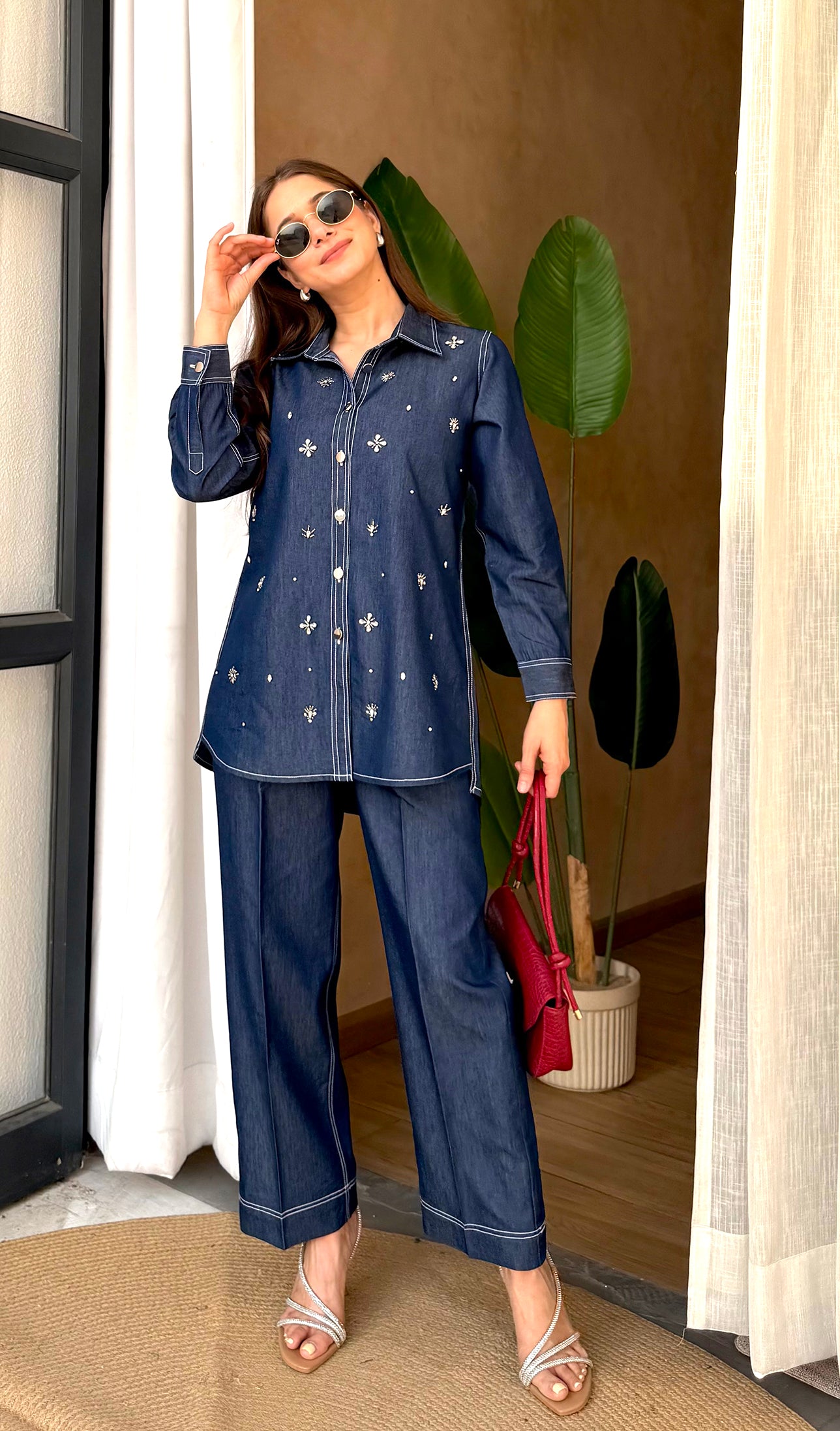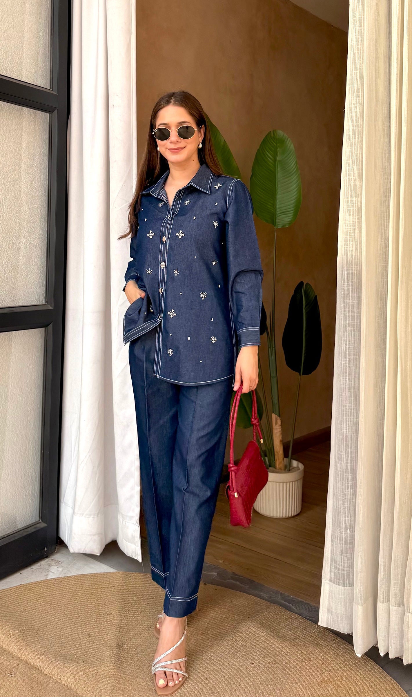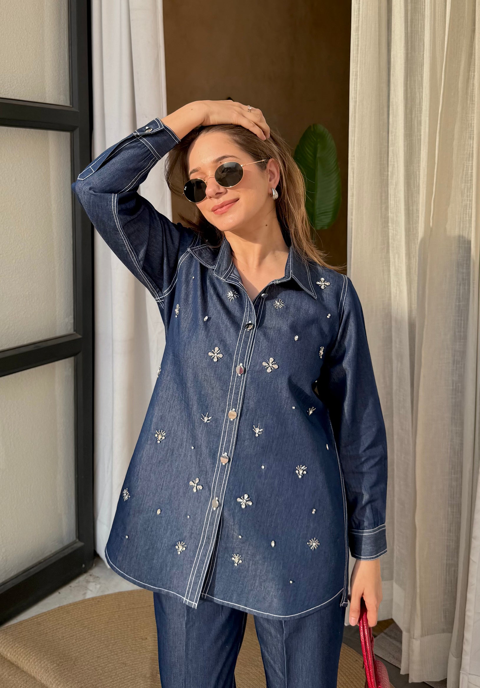 Denim Co-Ord Set (Pant + Shirt) - Twilight